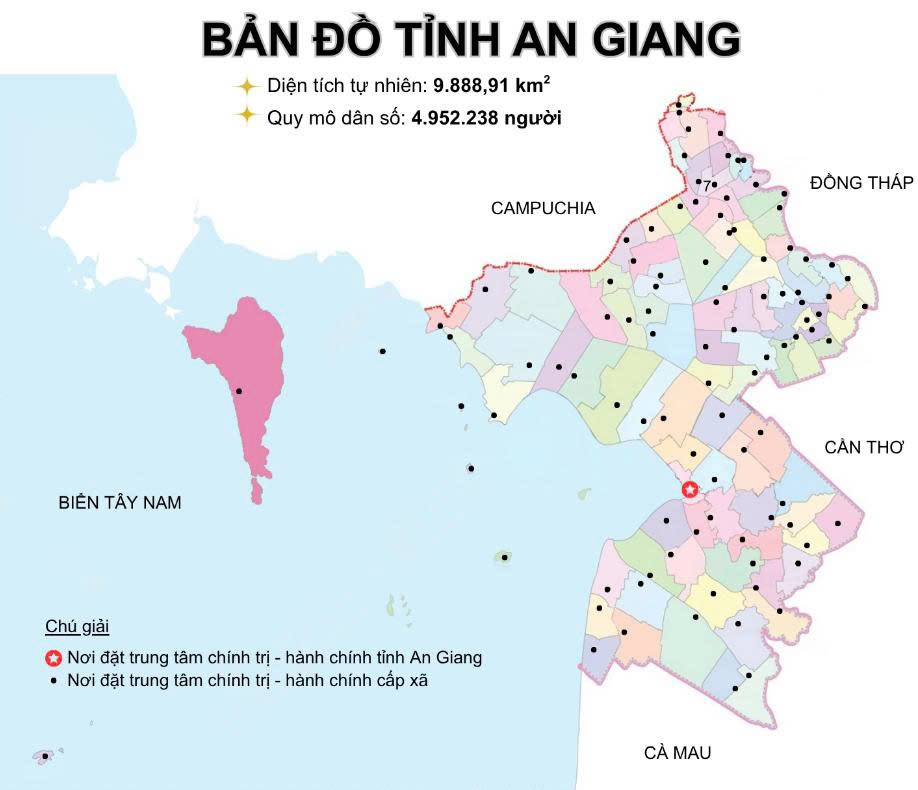 Ngày 1/7/2025, tỉnh mới An Giang chính thức hình thành trên bản đồ hành chính Việt Nam, là kết quả của quá trình hợp nhất hai tỉnh liền kề An Giang và Kiên Giang. Không chỉ là sự thay đổi về ranh giới địa lý hay cơ cấu bộ máy chính quyền, đây là dấu mốc lịch sử trong thực hiện nghị quyết Trung ương về sắp xếp tổ chức bộ máy tinh gọn, hiệu quả và mở rộng không gian phát triển toàn vùng.