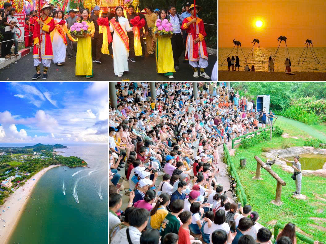 Du lịch An Giang sẽ phát triển vượt bậc hơn nữa sau khi sáp nhập. Trong ảnh: Du khách tham quan Vinpearl Safari, trải nghiệm môtô nước tại Hà Tiên, check-in tại Bãi Trường và dự lễ vía Bà Chúa Xứ núi Sam, thể hiện sức hút mạnh mẽ của điểm đến mới, giàu tiềm năng văn hóa và biển đảo.