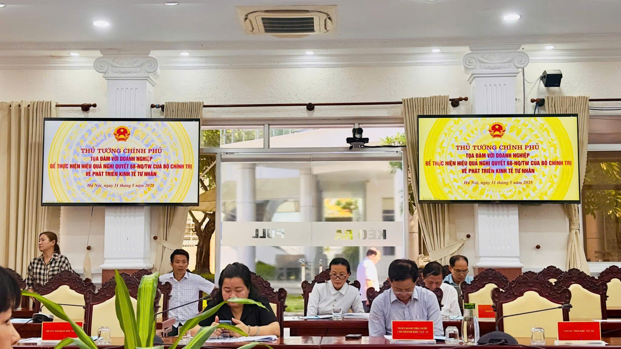 Thực hiện Công điện số 1009/CĐ-VPCP ngày 27 tháng 5 năm 2025 của Văn phòng Chính phủ; UBND tỉnh mời tham dự buổi tọa đàm trực tuyến với Thủ tướng Chính phủ với các doanh nghiệp, Hiệp hội doanh nghiệp về Nghị quyết số 68-NQ/TW ngày 04 tháng 5 năm 2025 của Bộ Chính trị về phát triển kinh tế tư nhân. Buổi tọa đàm do Thủ tướng Chính phủ Phạm Minh Chính chủ trì tại điểm cầu Trung ương.
