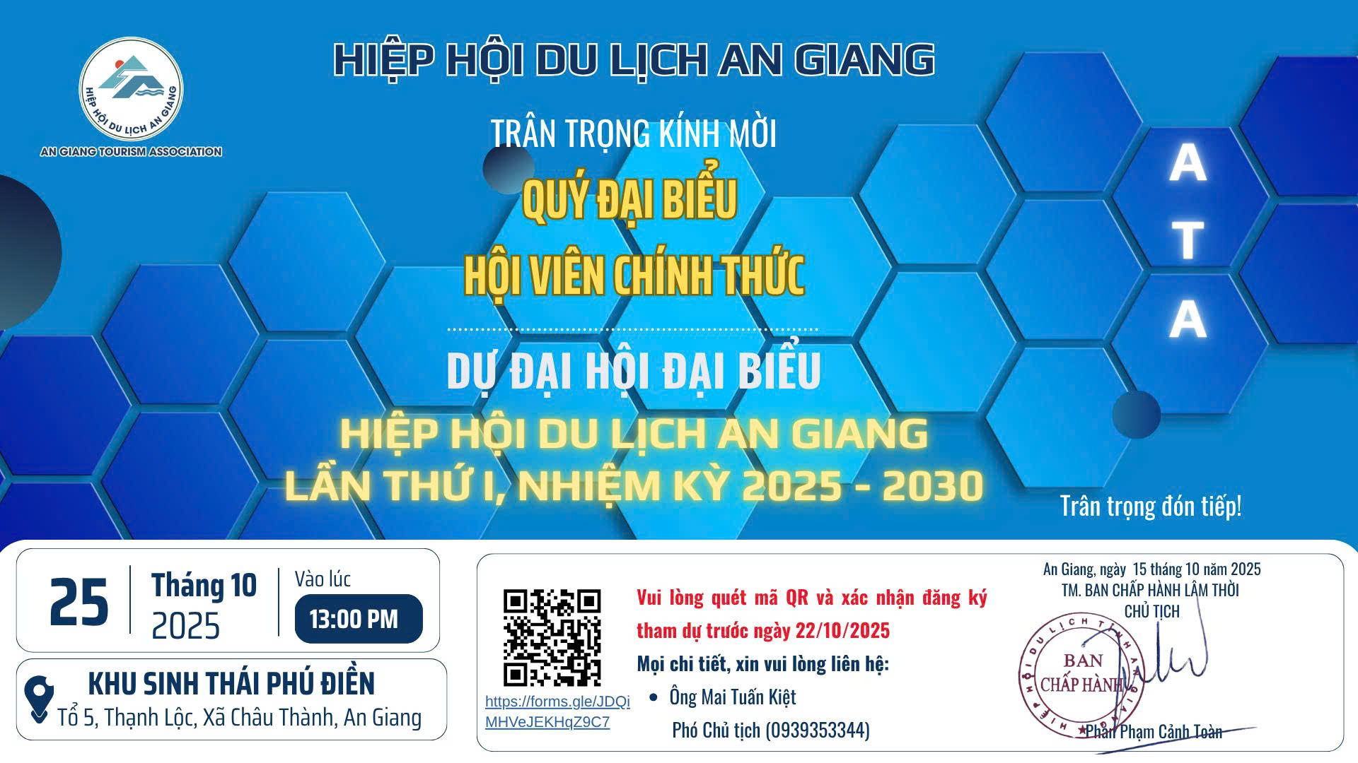 THƯ MỜI THAM DỰ ĐẠI HỘI ĐẠI BIỂU HIỆP HỘI DU LỊCH AN GIANG LẦN THỨ I, NHIỆM KỲ 2025 – 2030