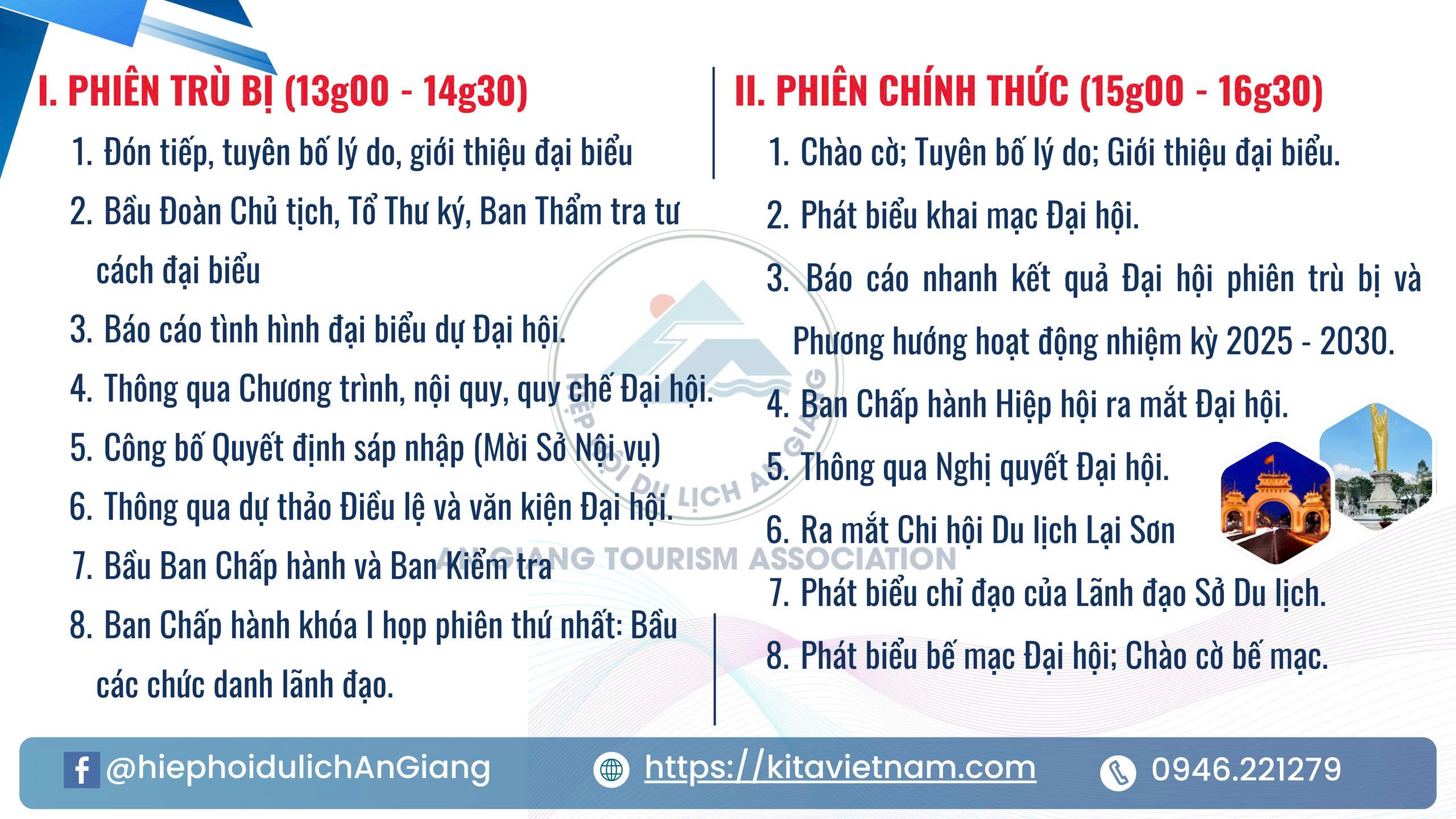 Hiệp hội Du lịch An Giang trân trọng kính mời Quý Đại biểu và Hội viên chính thức đến tham dự Đại hội Đại biểu Hiệp hội Du lịch An Giang lần thứ I, nhiệm kỳ 2025 – 2030.